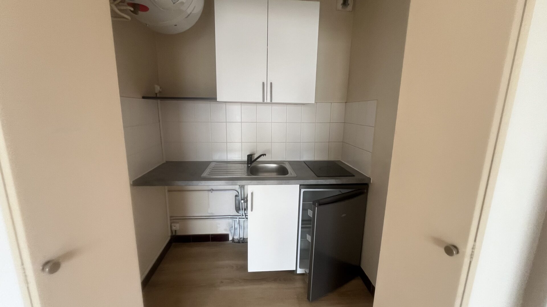 Il dispose d’une entrée avec placard, d’une pièce principale avec kitchenette équipée, d’une salle de bains avec wc et d’un parking.